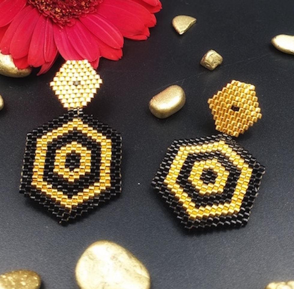 For those earrings, the beads used are black, and 24K gold coated beads.